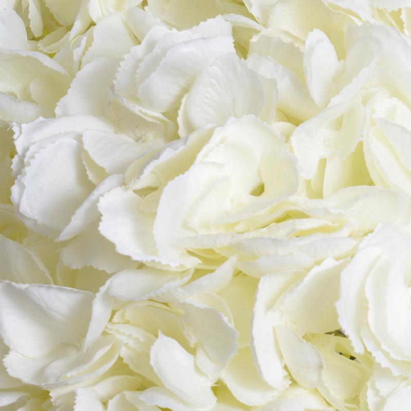 This bountiful arrangement of lifelike Hydrangeas looks fresh-cut from your garden. Four lacy white faux flowers are arranged by hand in our facility in North Carolina and set in a permanent clear acrylic solution that looks just like water. The classic 6" diameter glass vase balances the lush arrangement perfectly. Overall dimensions (approx.): 13" long x 14" wide x 11" high.