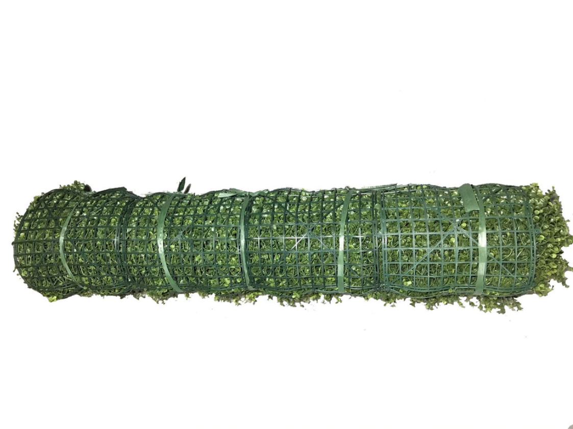 - Interlocked 12"W x 12"H faux boxwood pieces made into a 4'W x 8'H wall panel.