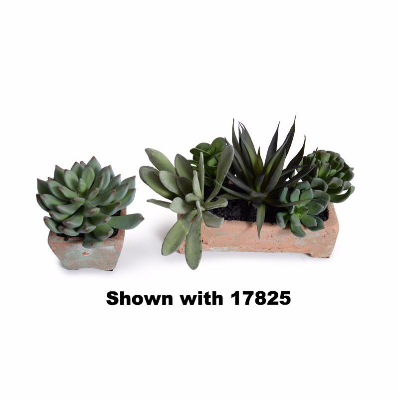 Artificial green Pachyphytum succulent plant looks so realistic planted in our faux "Durt" in a 3" square rough-finish natural terracotta pot. Perfect small accent plant or gift!