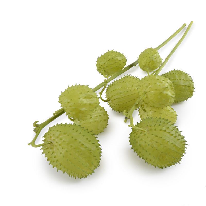 The Milkweed Fruit Branch is a striking addition to any arrangement with its unusual texture and light green color. The plastic reproduction of this spiky fruit is incredibly realistic. These 34" long stems can be cut or posed to suit your needs.
